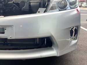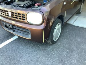 フロントバンパの凹みとガリっと擦れたキズを修理させて頂きました。